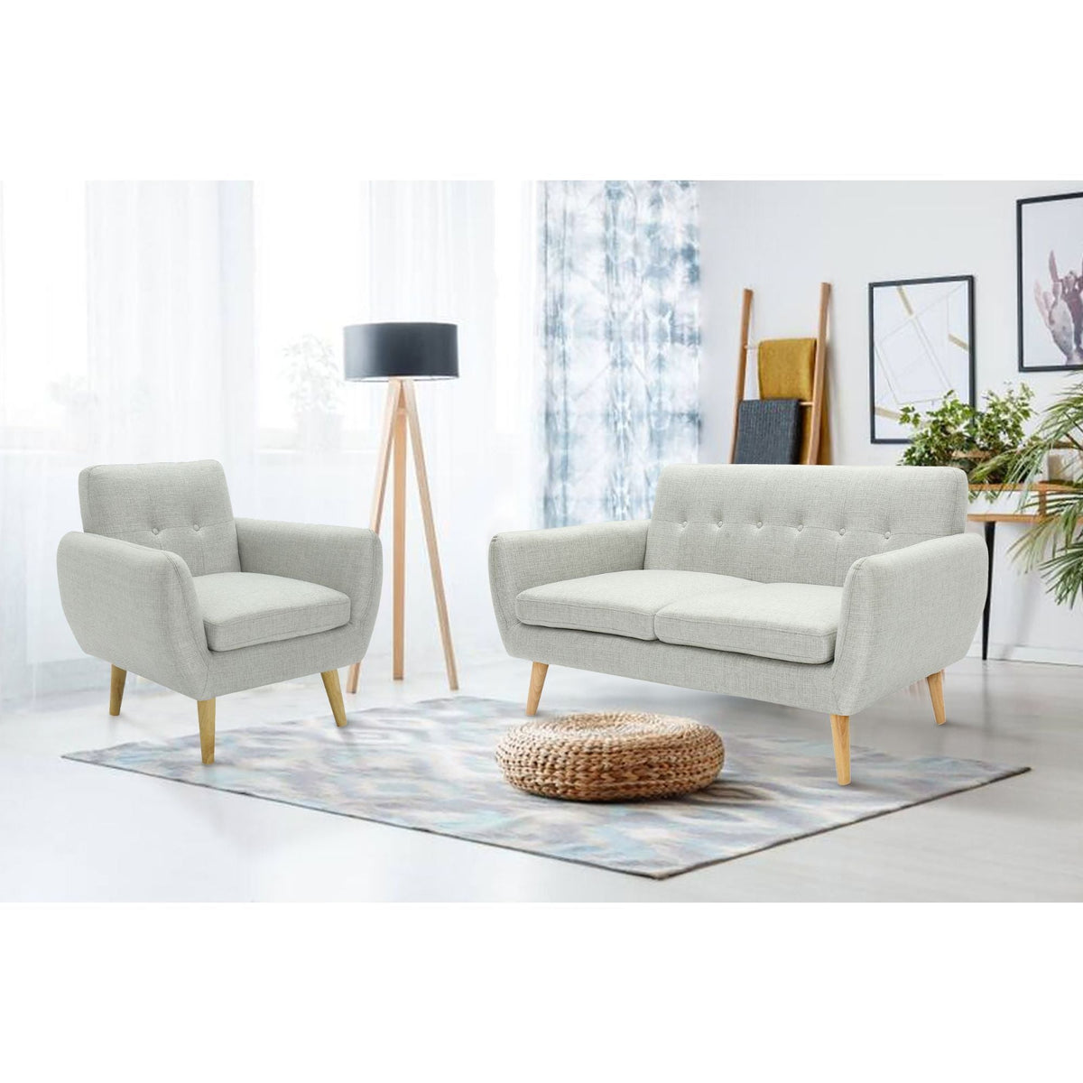 A sofa is the focal point of a living room. Place this beautiful sofa set that consists of a 1-piece 3-seater sofa and a 2-piece 2-seater sofa, designed in the Scandinavian style, in your living room to fill it with elegance. This sofa set is an epitome of superb craftsmanship. They showcase comfy looks, featuring tapered legs and outwardly sloping arms. They have a fixed backrest with button details and loose-style seat cushions with high-density foam for superior comfort. The sofas in light grey mix easily with any interior decor style. The entire sofa is upholstered in 100% polyester fabric, which is soft and durable. The stunning sofas also feature high-density foam, webbing, pocket springs, and S-springs that ensure complete relaxation for the body. The structural frame of the sofa is made of sustainably harvested solid wood and plywood, which gives it internal strength and resilience. The frame has a five-year warranty; the foam and springs have a three-year warranty; the fabric and stitching have a one-year warranty; and all other parts have a one-year warranty.