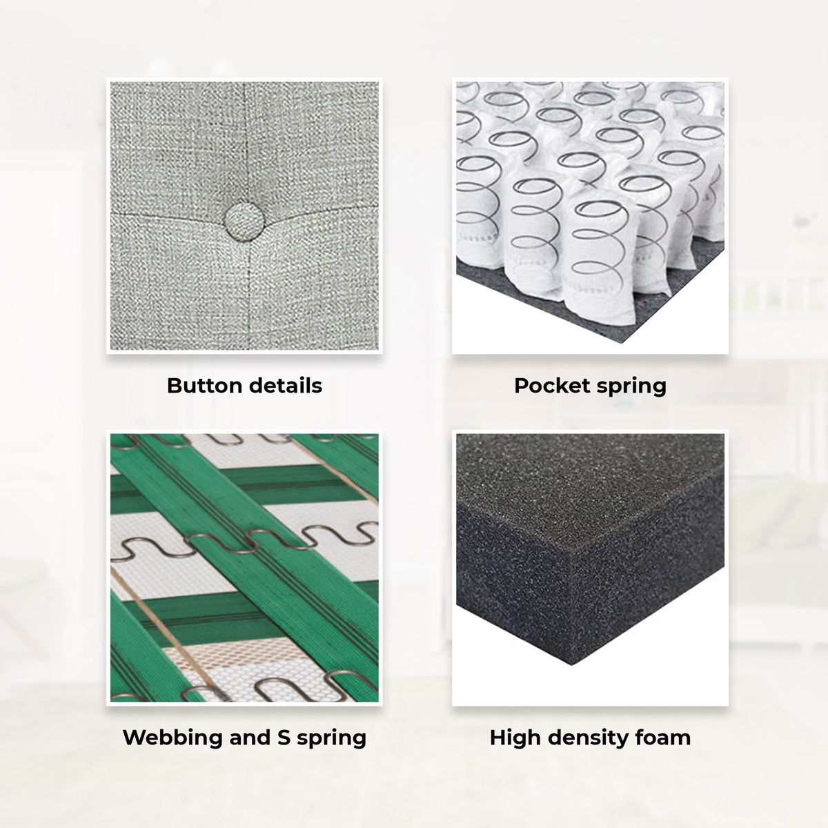 Seating Support: Webbing, foam, pocket spring, S-spring
