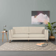 A newly renovated living room immediately draws attention. Place this beautiful sofa, designed in the traditional style, in your living room and give your living area a whole new personality. The 3-seater sofa is the embodiment of amazing craftsmanship that is minimalist and stylish. It showcases comfy looks, featuring tapered legs and twin-layered pillow arms for ultimate comfort. Its timber legs have Scandinavian design elements that make them highly attractive. The sofa has a fixed backrest and seat cushions with high-density foam for superior comfort. The sofa's stone colour blends easily with any interior decor style. The entire sofa is upholstered in 100% polyester fabric, which is soft and durable. The stunning sofa also features high-density foam, pocket springs, and U-shaped springs that ensure complete relaxation for the body. The structural frame of the sofa is made of sustainably harvested Eucalyptus Solid Wood and Plywood, which gives it the internal strength and resilience it requires. The frame has a five-year warranty; the foam and springs have a three-year warranty; the fabric and stitching have a one-year warranty; and all other parts have a one-year warranty.