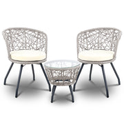 Gardeon 3PC Bistro Set Outdoor Furniture Rattan Table Chairs Patio Garden Cushion Grey